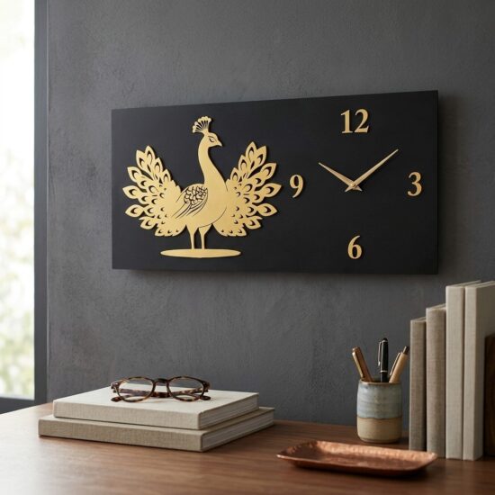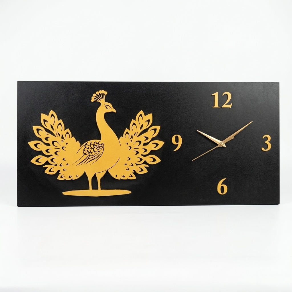 Add a touch of timeless beauty and Indian heritage to your space with the Handcrafted Peacock Wall Clock. Featuring a majestic golden peacock with intricately detailed feathers, this elegant wall clock is crafted from premium materials and finished in a sophisticated black-and-gold combination.
